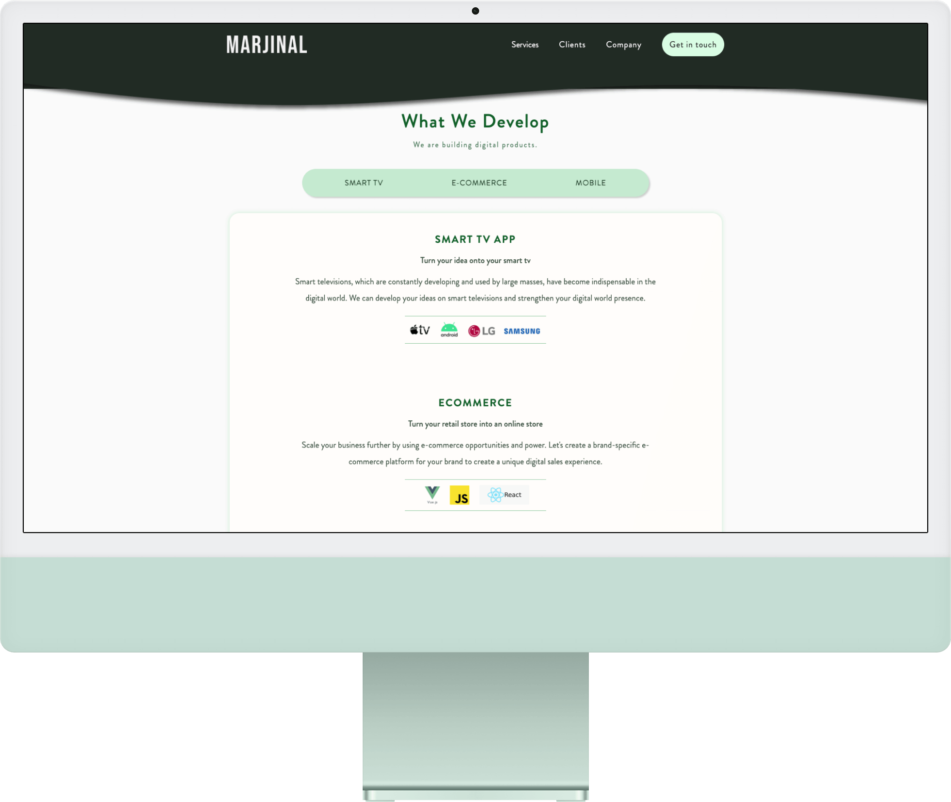 Marjinal Software provides many sercives like Smart Tv Apps - Ecommerce - Mobile Apps - Custom Software - UX/UI Design. Several customers from different sectors.